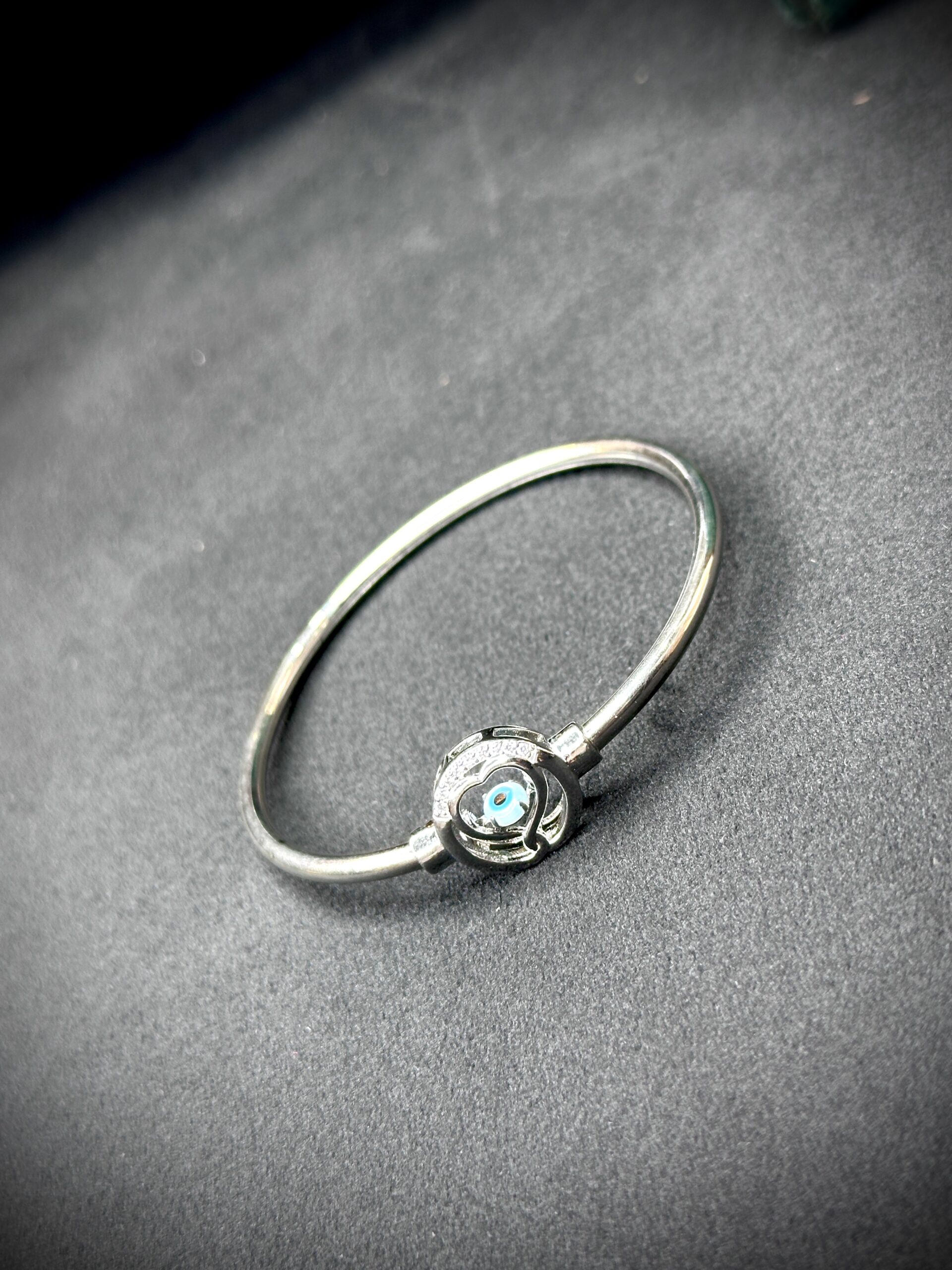 A minimal kada featuring a bold evil eye charm for a trendy yet meaningful look…