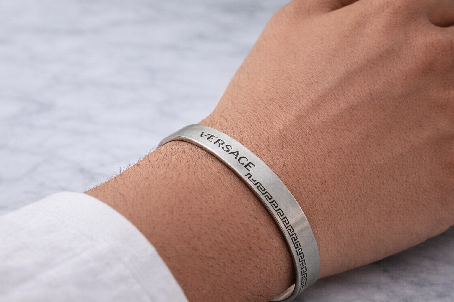 Upgrade your style with this sleek engraved silver-toned kada, designed for a modern yet timeless appeal…