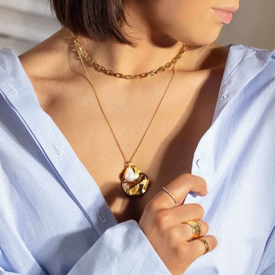 A precious and highly durable metal which comes in different golden hues depending on its purity. Every piece is handcrafted with 100% recycled gold vermeil and sterling silver, reducing CO2 emissions by over 60%. Turns out the best things really do come in small packages. . To avoid contamination by contact, store the piece away from any metal that might cause it to rust. Avoid scrapes and scratches, as the plating is applied only to the surface of the piece. Clean with water, pH-neutral soap and a small brush.
