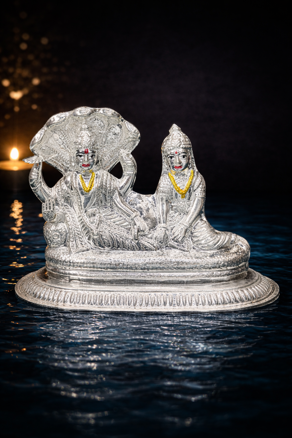 This divine murti beautifully depicted Lord Vishnu in his serene resting posture on the sacred serpent sheshnag , with goddess Lakshmi seated beside him in devotion…